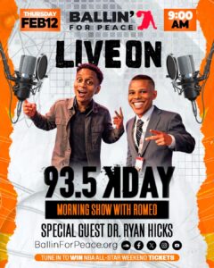 Ballin’ for Peace Interview on 93.5 Kday Thursday FEB 12th 9:am! Win Tickets to NBA All Star Weekend! Tune in! www.935kday.com